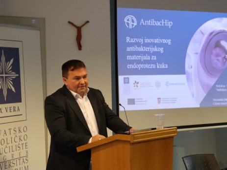 U petak 13. prosinca 2024. u dvorani Stepinac Hrvatskog katoličkog sveučilišta predstavljen je novi projekt Razvoj inovativnog antibakterijskog materijala za endoprotezu kuka – AntibacHip, koji Hrvatsko katoličko sveučilište (HKS) provodi u partnerstvu sa Fakultetom kemijskog inženjerstva i tehnologije Sveučilišta u Zagrebu i našim Društvom. Okupljenim partnerima, istraživačima , djelatnicima i suradnicima projekta uvodnu riječ uputio je prof. dr. sc. Željko Tanjić, rektor HKS-a, izrazivši ponos što su se različiti stručnjaci okupili u partnerstvo pod vodstvom HKS-a te im je svima čestitao [...]